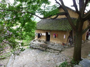 農村の民家洗濯物が干してあります。